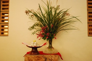 ロビーに ススキとお団子を飾り