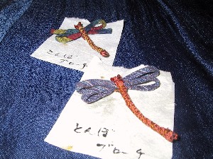 お土産コーナーの藍染の布を使った赤とんぼも さわやかな秋の日を喜んでいるようです。